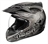 | ✚✚✚ Icon Variant Urban Assault Full Face Motorcycle Helmet Black Etched Extra Large XL 0101-4729 Tough fiberglass/dyneema/carbon fiber shellLong oval headform is wind-tunnel tested and refinedAnti-lift visor reduces glareMultiple oversized intake and exhaust portsOptically correct quick-change fog-free face shieldRemovable Hydra-Dry moisture-wicking linerRear spoiler adds high-speed stabilityRemovable chin curtainRubatone is a matte rubberized paint developed to match your riding gearAll World Standard, meets or exceeds the following: DOT FMVSS 218 (USA), ECE 22-05 (Europe), SAI AS1698 (Australia) and SG (Japan) safety and testing standards; does not ship with SAI or SG stickers unless purchased from an authorized dealer in that countryAll items are sold individually unless specifically described otherwise in the product description